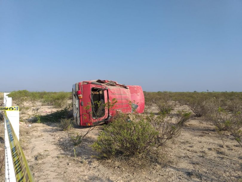La mañana de este lunes, aproximadamente a las 07:00 horas se reportó que sobre la carretera estatal entre las comunidades de La Pardita y Cedros se registró un accidente tipo salida de camino y volcadura de una camioneta de la marca Chevrolet, tipo Suburban, color rojo, con placas del estado de Tamaulipas.